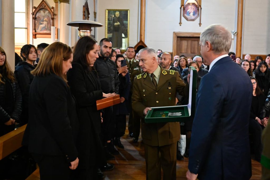 La misa de despedida se realizó en la Iglesia Sagrado Corazón de Puerto Varas y contó con la presencia de diversas autoridades civiles y policiales, encabezadas por el Presidente de la República, José Antonio Kast, y el General Director de Carabineros, Marcelo Araya Zapata, además de familiares, amigos y compañeros de la institución.