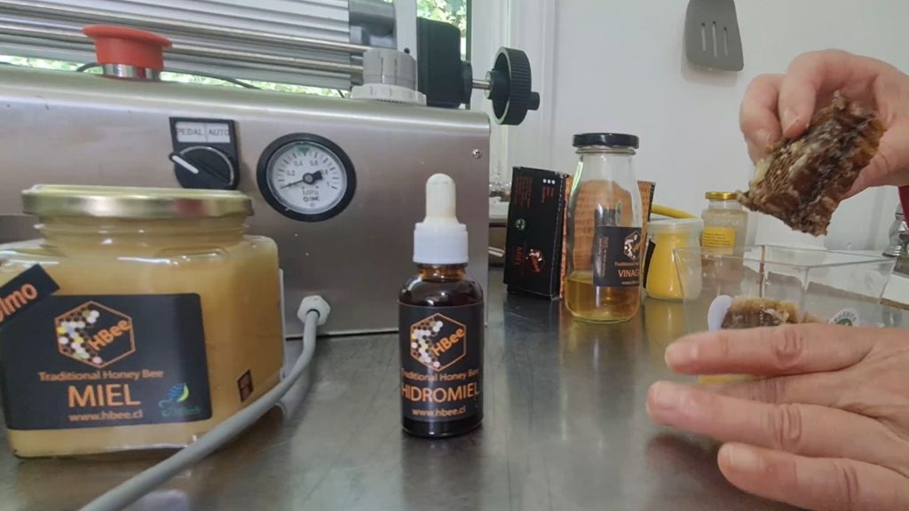 El trabajo de HBee no se limita a la miel convencional. En su sala de procesos se producen mieles crudas de distintos orígenes botánicos, polen, mini panales, propóleo y vinagre de miel, todos con foco en la calidad, la inocuidad y la trazabilidad. Parte importante del valor de estos productos está en el cuidado de cada etapa: desde el manejo de las colmenas y la cosecha, hasta la decantación, el envasado en vidrio y la comercialización en tiendas de nicho, pensadas para consumidores que buscan alimentos diferenciados y de origen conocido.