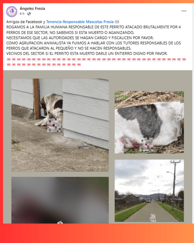 Este caso, ampliamente denunciado por animalistas a través de redes sociales, evidencia que los perros atacantes no estaban bajo control, situación que contraviene directamente la Ordenanza Municipal de Tenencia Responsable de Mascotas y Animales de Compañía de la Comuna de Fresia, aprobada y vigente desde abril de 2023.